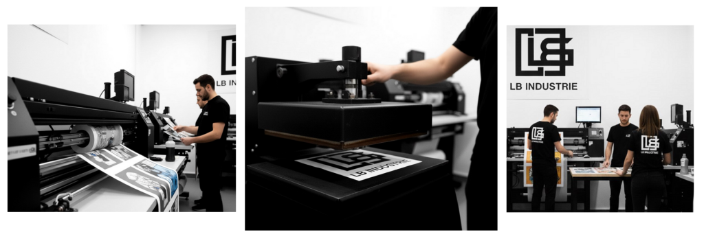 - Nous vous conseillons et validons ensemble le choix du textile, le format d’impression, le placement de vos visuels pour un projet en adéquation avec vos envies et vos besoins.